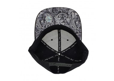 Hat: Black Cotton Fabric, normal fit Main Logo: Funeral 3D embroidery Inside Lining: Lauren Rose inlining Visor: A flat brim, with LR bandana printed undervisor Back: A black snapback