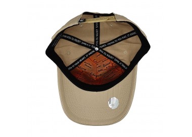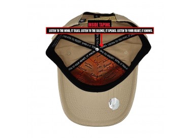 Hat: Khaki fabric, normal fit baseball hat Front Logo: The 3D round logo Red Cloud chief Side of the hat: ‘Wisdom Bravery’ embroidery Backside: A snap closure and LR logo Inside of the hat: The inside contains two front panels with a print of the indigenous peoples' territory print. This makes this hat an exclusive high-end Lauren Rose strapback!