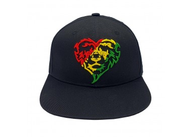 The Lion is a symbol of power and independence, this inspired Lauren Rose to create a hat that shows the strength of the king of the jungle. The lion-shaped as a heart is embroidered in a 3 shadow embroidery on the front of this black hat. Lauren added the Rastafarian movement colors red, yellow, and green to the lionhearted logo.