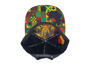 Red represents the blood spilled in defense of Ethiopia; yellow represents peace and harmony between Ethiopia’s various ethnic and religious groups; and green is said to symbolize hope, or the land and its fertility. A true Rastafarian will also recognize the homeland Africa print underneath the visor.