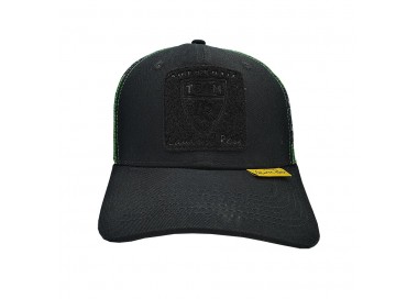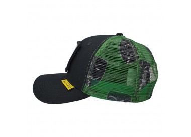 Hat: Black cotton fabric, green mesh with the masks print, normal fit