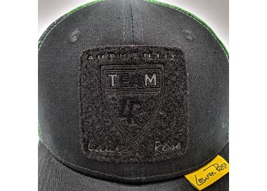 Main Logo: Detachable 3D embroidery ANONYMOUS logo, underneath the authentic Lauren Rose Team LR logo.