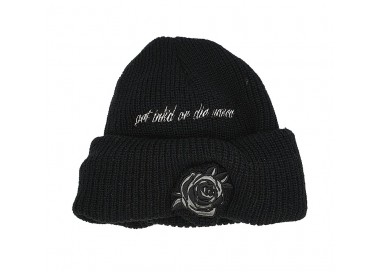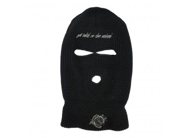 Deze skimuts is verkrijgbaar in zwart waarbij je in optie 1, de geborduurde roos op de voorkant van je hoofd draagt. In optie 2 zit de roos in je nek.