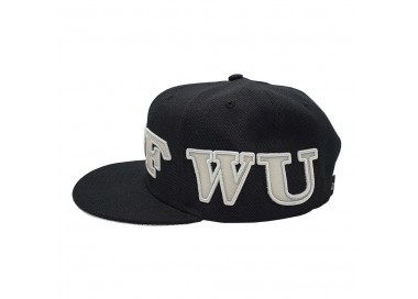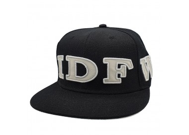 De letters IDFWU zijn over de hele snapback geborduurd en ingevuld met offwhite leather look materiaal. Het zelfde offwhite materiaal is ook gebruikt onder de klep, voor een stukje extra fashion beleving.